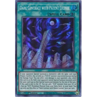 Thẻ bài Yugioh - TCG - Dark Contract with Patent License - Độ hiếm Super rare 1st edition - Thuộc hộp bài Battle of ChaosSản phẩm chính hãng Konami. Hoàn tiền 100% nếu sản phẩm không như miêu tả'