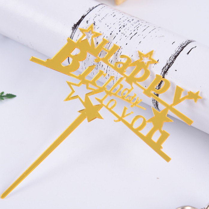 Thẻ cắm meka chữ Happy BirthdayToYou trang trí bánh sinh nhật, mica trang trí