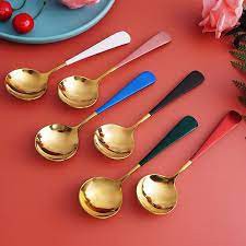 Giới thiệu Thìa Inox Mạ Vàng Sang Chảnh Cán Màu, Đầu Nhọn Không Gỉ-TC