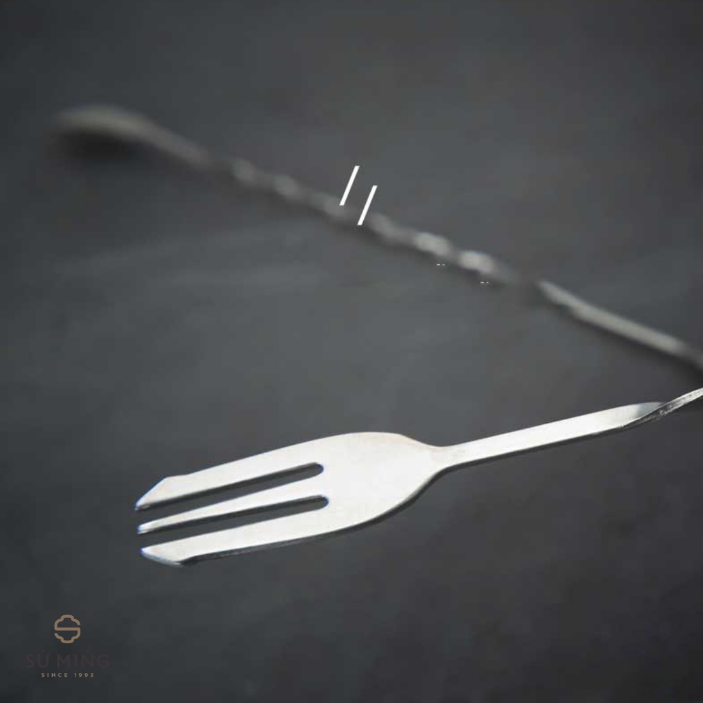 - Tính năng 2 đầu giúp tiết kiệm chi phí, thời gian trong khâu vận hành của đồ pha chế. 1 đầu thìa 1 đầu là xiên phục vụ cho 2 mục đich khác nhau. Trên thân thìa được thiết kế xoáy giúp cho người bartender có thể biểu diễn kĩ năng của mình một cách dễ dàng.