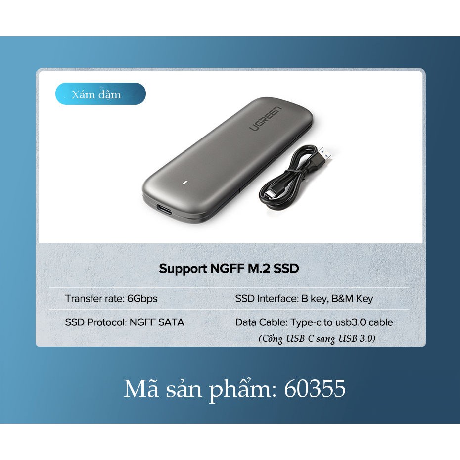 Thiết bị đựng ổ cứng M2 SATA NGFF hỗ trợ B-Key và M+B Key 2230/2242/2260/2280,UASP, 6Gbps cổng USB type C UGREEN 60355