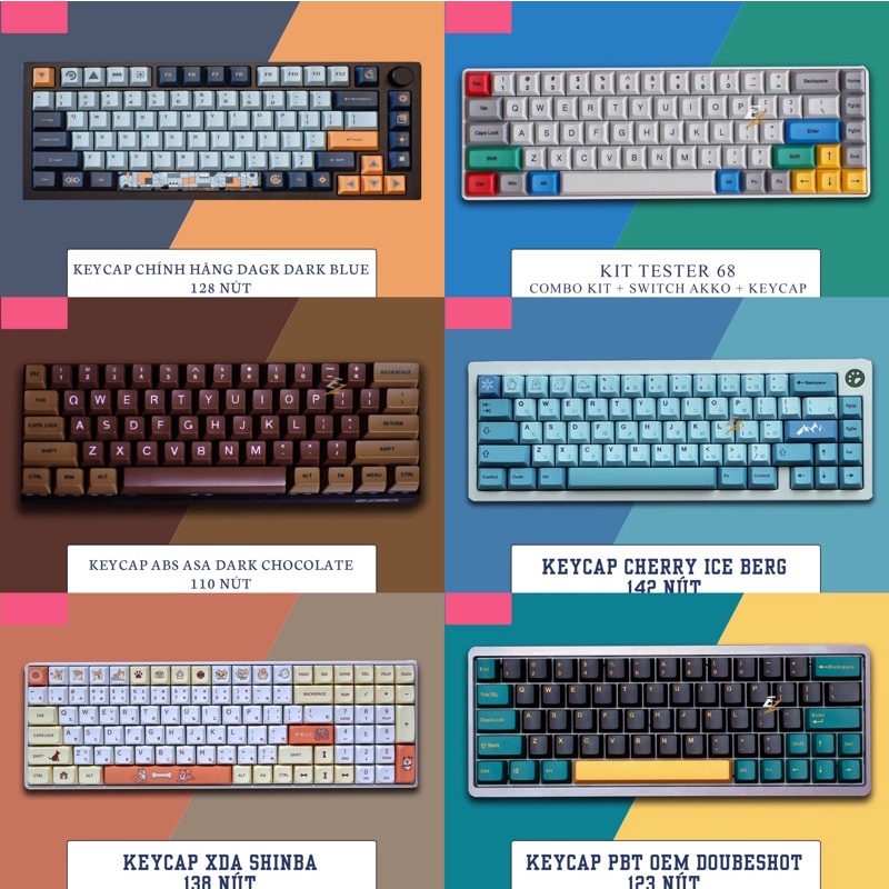 Hàng Có Sẵn_ Now Ship Trong NgàyAlbum tổng hợp các mẫu keycap thay thế cho bàn phím cơ. Mỗi phân loại là 1 mẫu mã, có sự tương thích khác nhau với từng mã bàn phím.