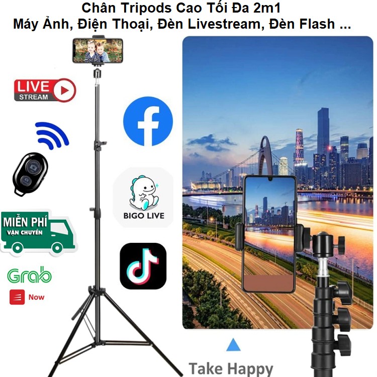 Chân Tripods Cao 2M1 Có Điều Chỉnh Cao Thấp - Giá Đỡ Điện Thoại - Máy Ảnh - Đèn Flash - Chụp Ảnh - Quay Video Chuyên NghiệpFeacture: