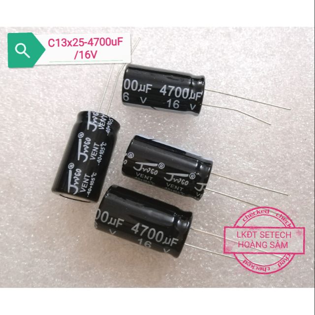 Mô tả sản phẩm : Tụ hóa phân cực 4700uF 16V size 13x25.Tụ hóa phân cực 4700uF 50V size 18x35.