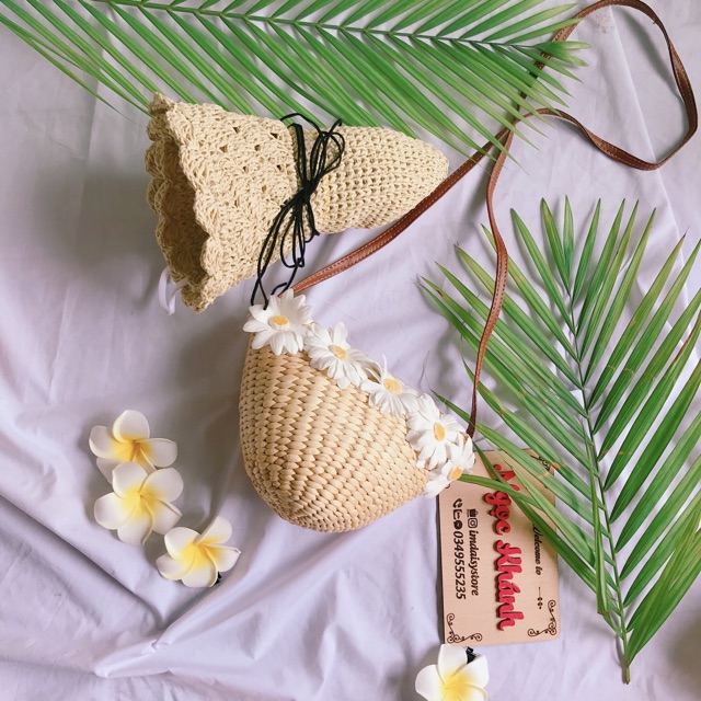 Túi cói lục bình nhỏ xinh dạng tam giác phồng