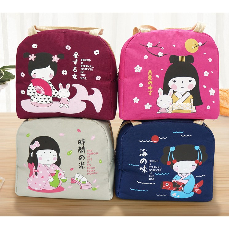 TÚI GIỮ NHIỆT- Sản phẩm có thiết kế tương tự như một chiếc túi xách nhỏ nhắn, in họa tiết cô gái phong cách Japan nổi bật.