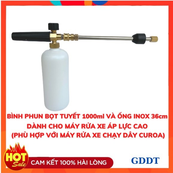 (Phù Hợp Với Máy Chạy Dây Curoa) Bình phun bọt tuyết 1000ml và ống inox dài 36cm dành cho máy rửa xe gia đình