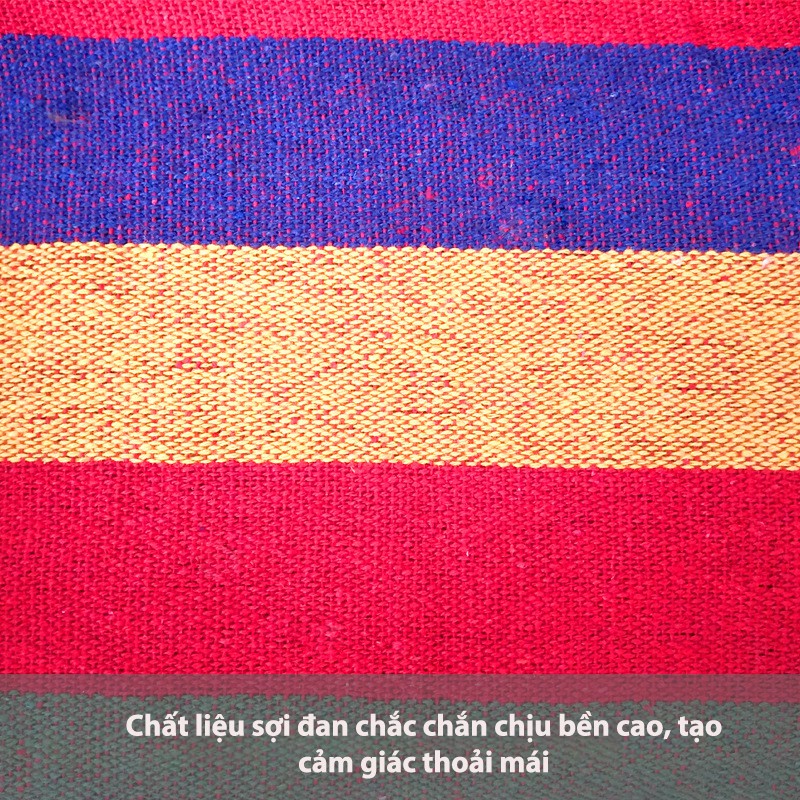 ♘ Võng Nhiều Màu Gấp Gọn Tiện Lợi gồm 2 lớp dày và mịn, 2 đầu được may chắc chắn, có thể ngồi được 2 người sức nặng chịu được khoảng 100kg.