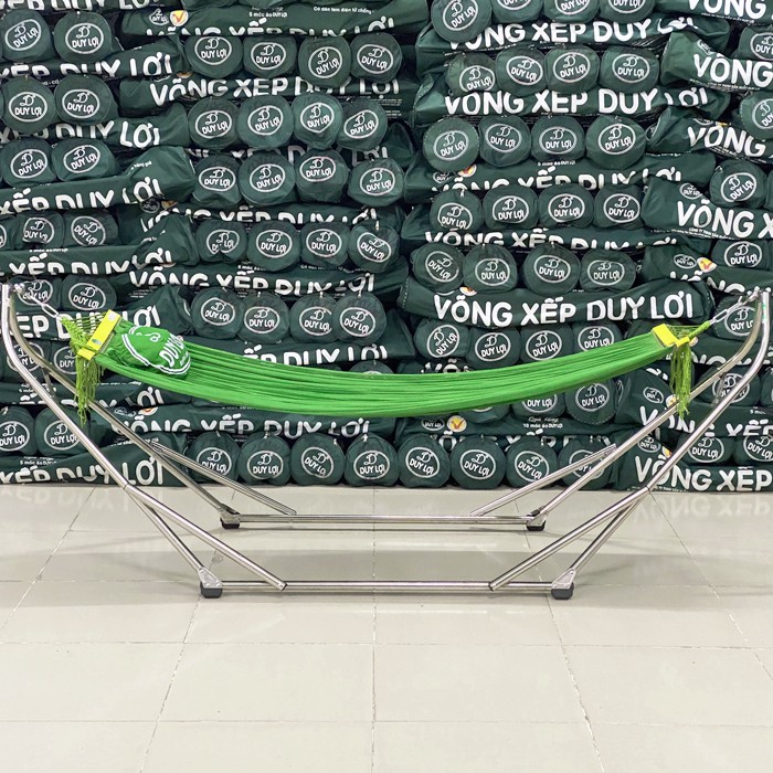 SẢN PHẨM PHÙ HỢP VỚI TRẺ EM VÀ NGƯỜI CAO DƯỚI 1.5MVõng xếp khung inox Duy Lợi cỡ nhỏ dài 2.4m.
