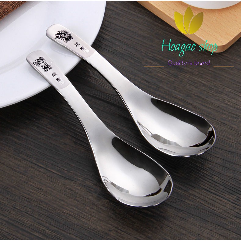 01 Muỗng, thìa to ăn cơm, canh khắc 12 con giáp bằng INox 304 cao cấp, dụng cụ ăm cơm trưa văn phòng tiện dụng