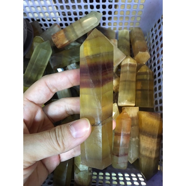 Nhà cửa & Đời sống > Trang trí nhà cửa > Khác || 01 trụ đá rainbow fluorite màu vàng nhiều lớp.Còn hàng