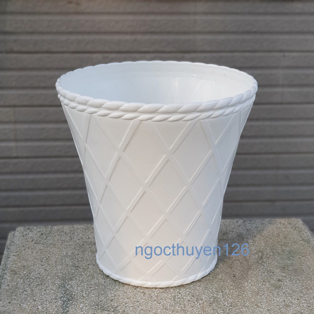 Bộ 02 chậu caro trồng hoa kiểng màu trắng nhựa dày đẹp size trung 27x27x18cm