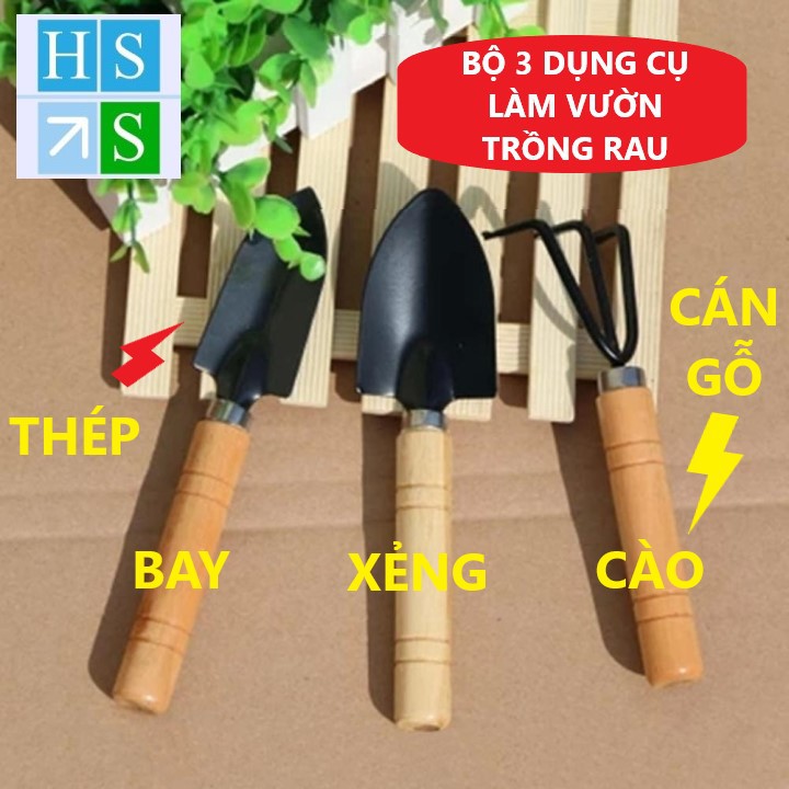 Nhà cửa & Đời sống > Làm vườn > Dụng cụ làm vườn || Bộ 03 Dụng cụ làm vườn mini cán gỗ (Xẻng + Bay + Cào đất) dùng đa năng trồng rau trồng hoa chăm cây cảnh tiện lợiCòn hàng