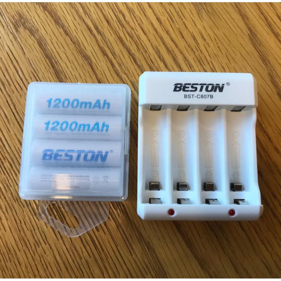 - Pin sạc AA (pin tiểu) dung lượng 1200mAh 1.2V, pin AAA (pin đũa) dung lượng 1100mAh 1.2V do hãng BESTON sản xuất sẽ được sạc đầy trong vòng 6h-8h.