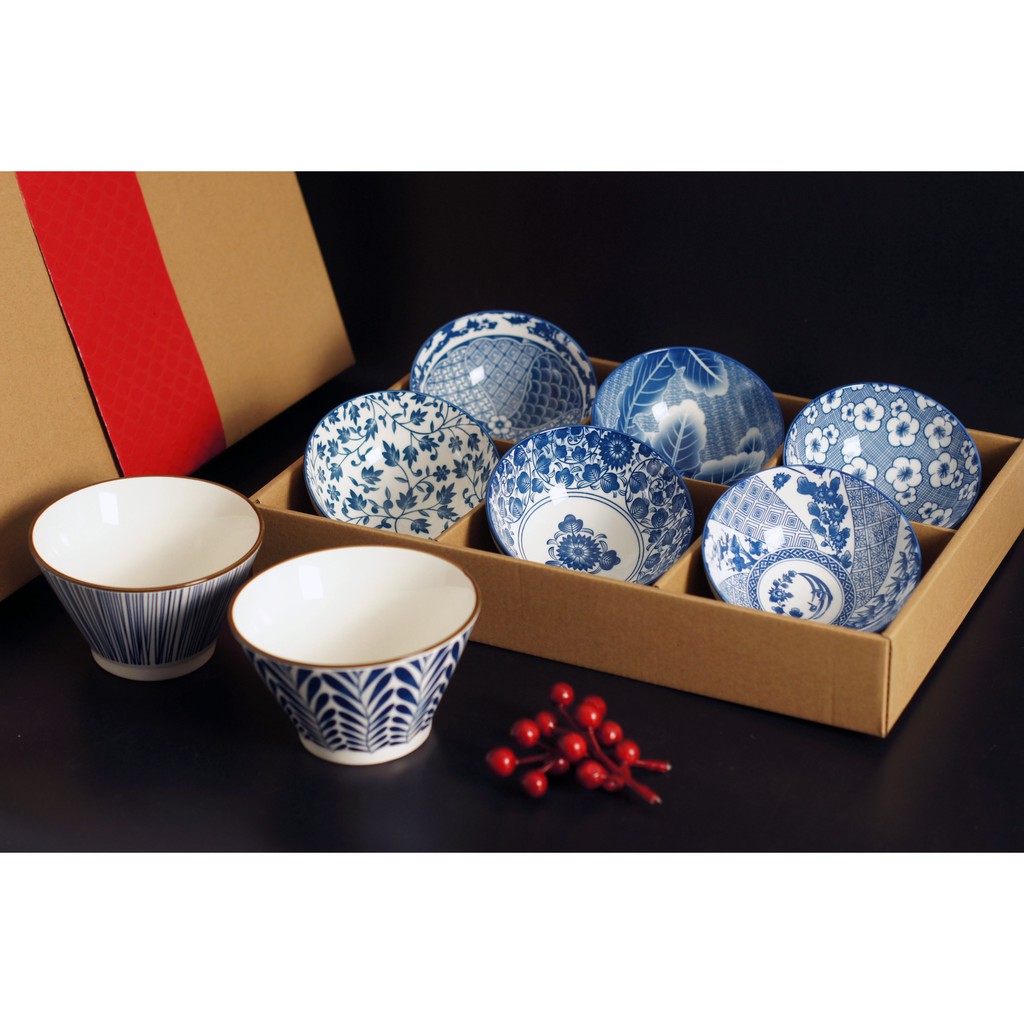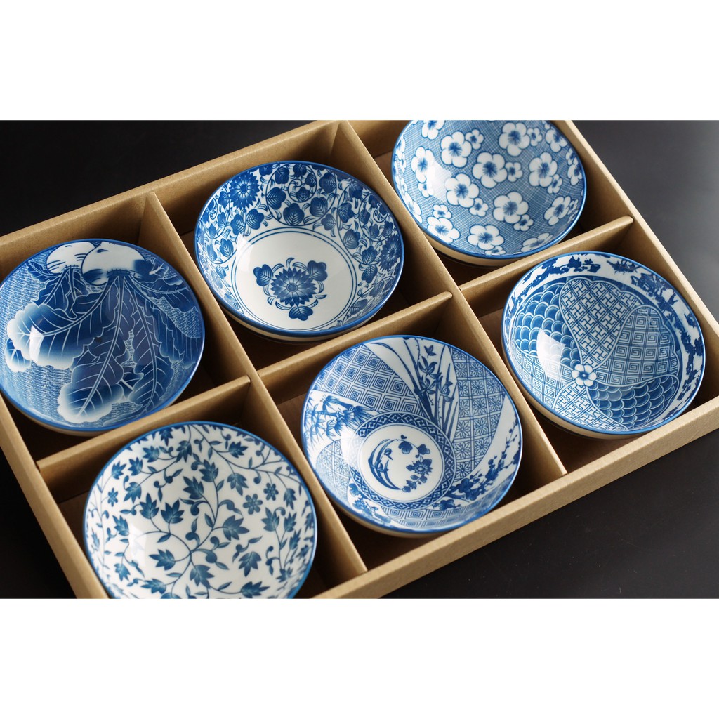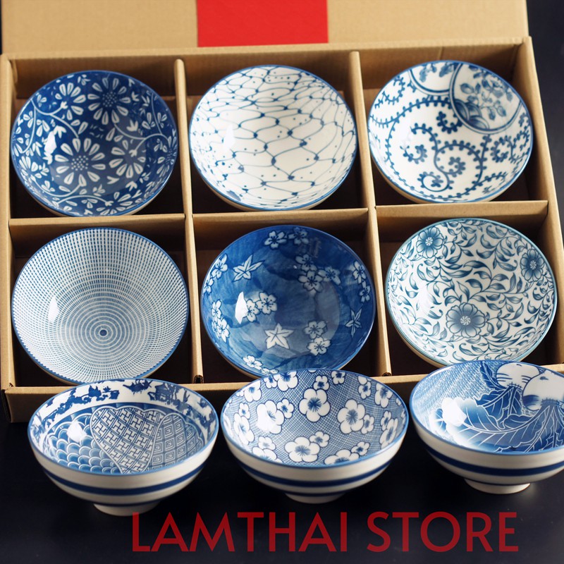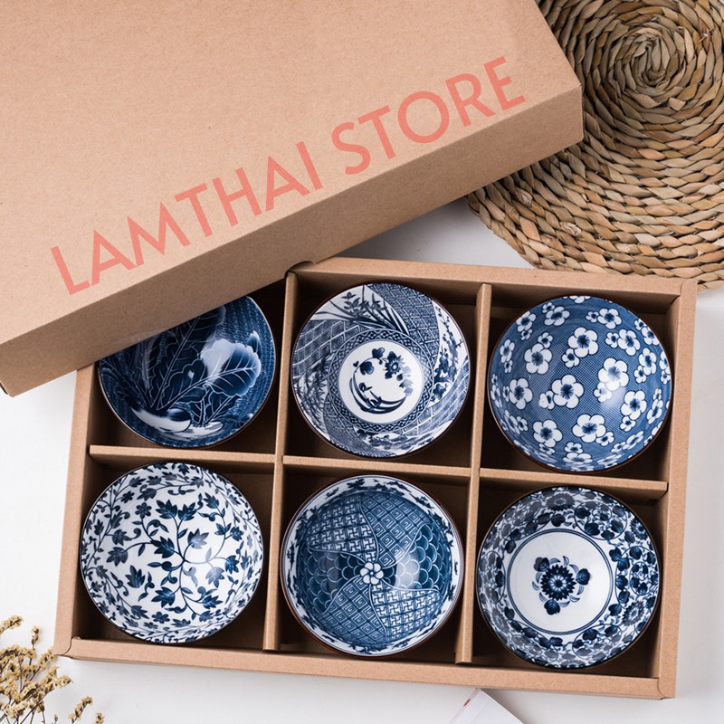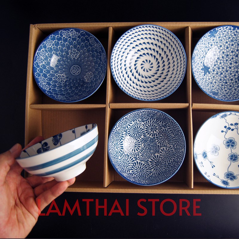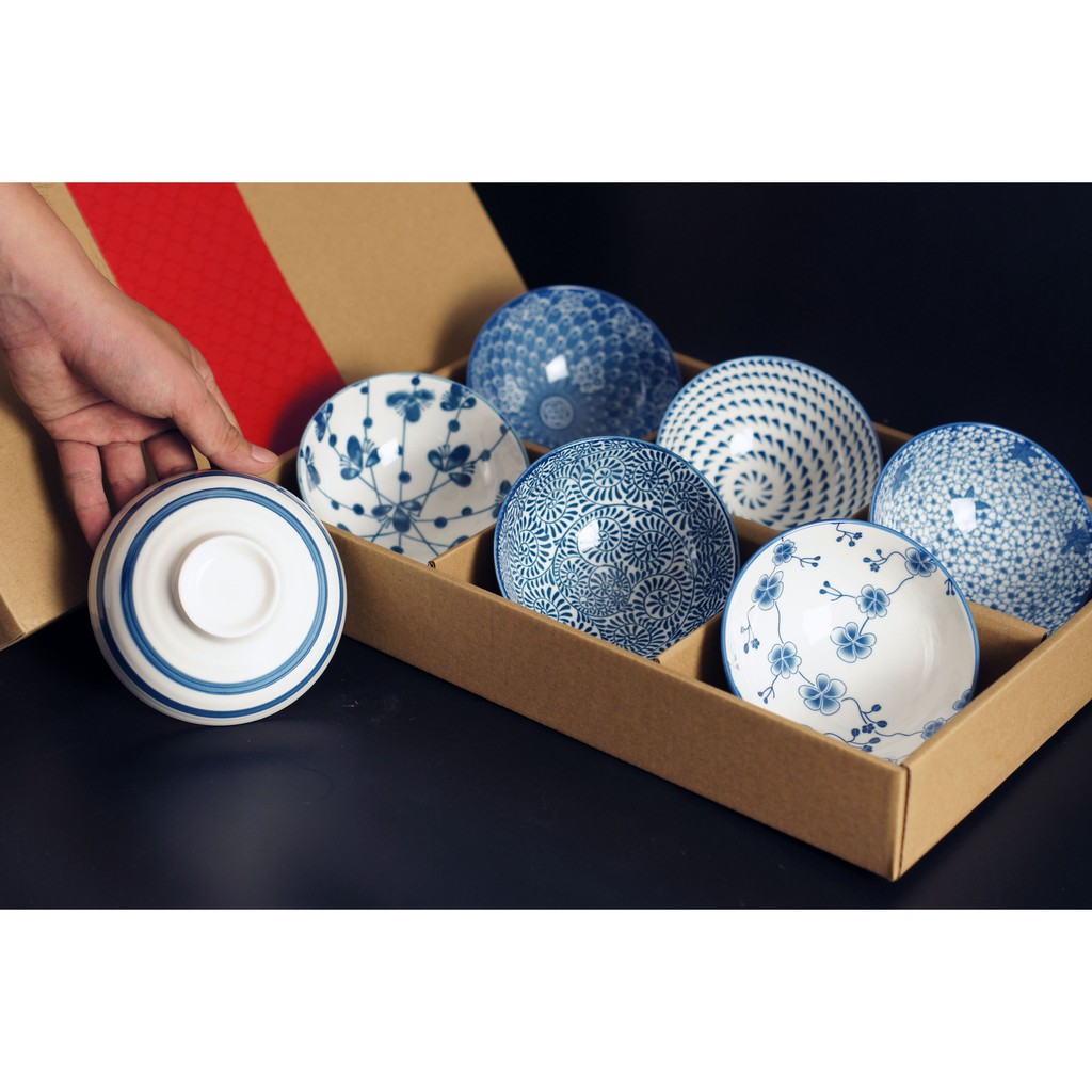 👍Bộ 06 chén cơm (bát cơm) gốm sứ phong cách Nhật Bản- Mẫu mã đa dạng, họa văn tinh tế, màu men xanh lam rất đẹp