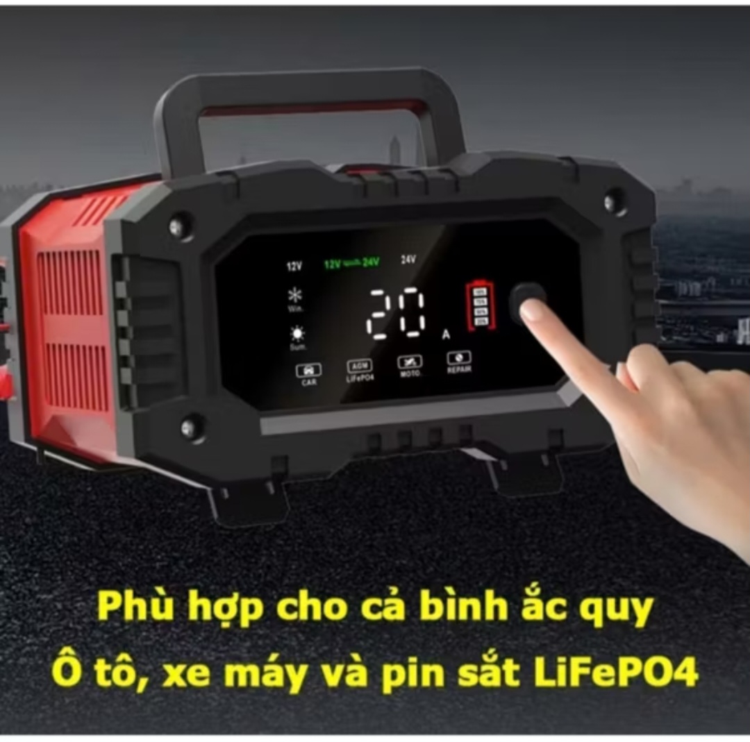 Phù hợp cho cả ắc quy 12V và 24V, đáp ứng nhu cầu sử dụng đa dạng.