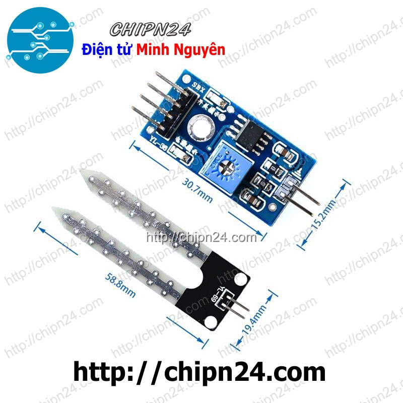 - Cảm biến phát hiện độ ẩm đất, bình thường đầu ra mức thấp, khi đất thiếu nước đầu ra sẽ mức cao. Module có thể sử dụng để tưới nước tự động