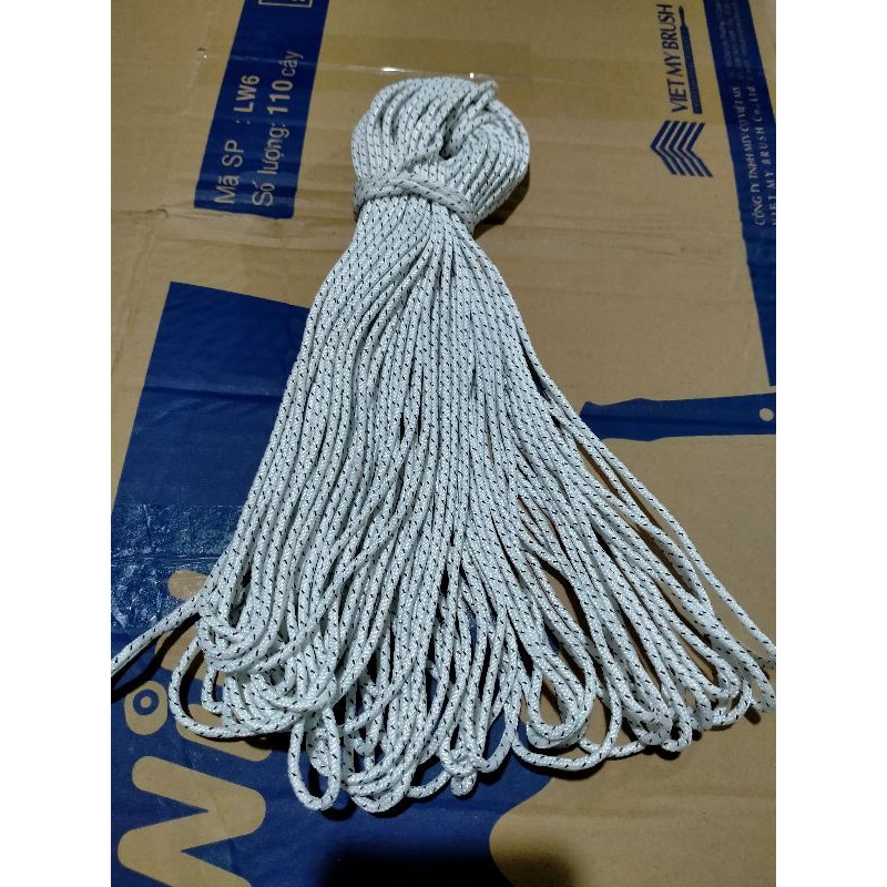 Dây dù sợi Polyester dẻo dai, bền bỉ, khó đứt. Dây trắng đốm hạt mè đenDây 2,7mm phù hợp dùng để kéo rèm, câu cá lớn, đan ghế, quấn chai lọ để trang trí, cột đồ...