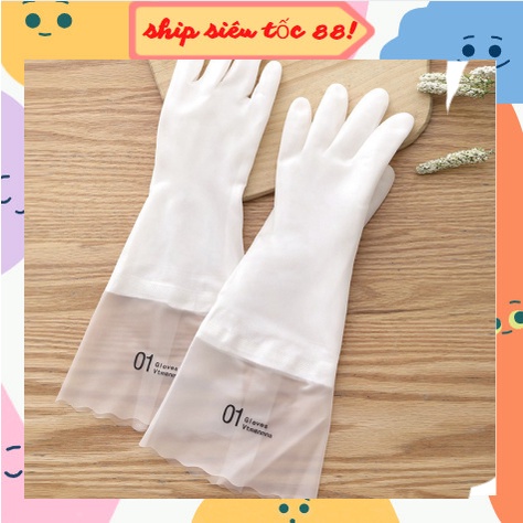 1 ĐÔIGăng tay cao su siêu dai, siêu bền loại dài - lót nỉ có chun bo 88237 SHIP SIÊU TỐC 88