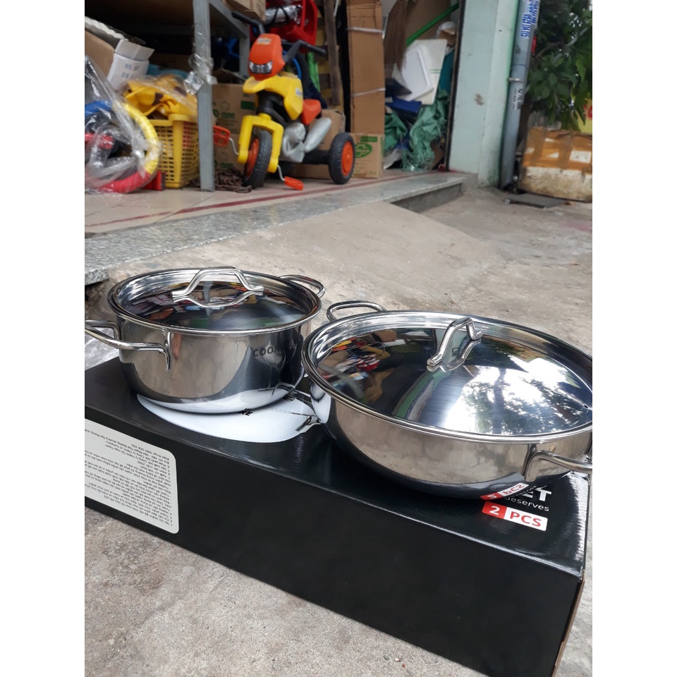 Nhà cửa & Đời sống > Dụng cụ nhà bếp > Chảo || Bộ 1 nồi 1 chảo lẩu inox quà từ SharpCòn hàng