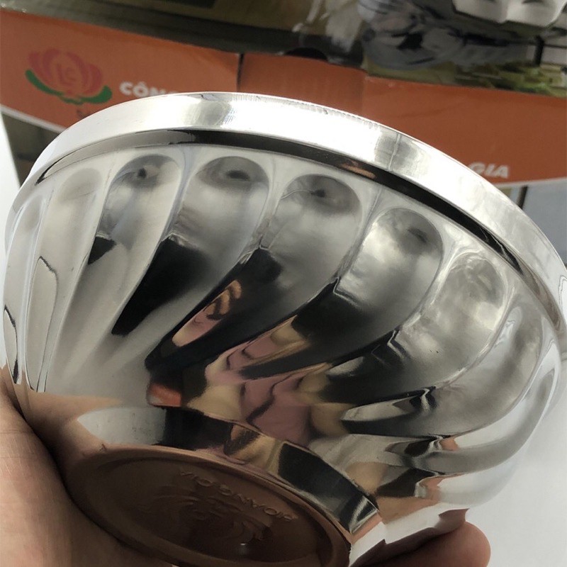 Nhà cửa & Đời sống > Bộ đồ bàn ăn > Tô || Bộ 10 bát cơm Inox 2 lớp cách nhiệt Hoàng Gia mẫu xoắn cỡ 11,5cmCòn hàng