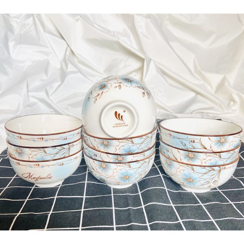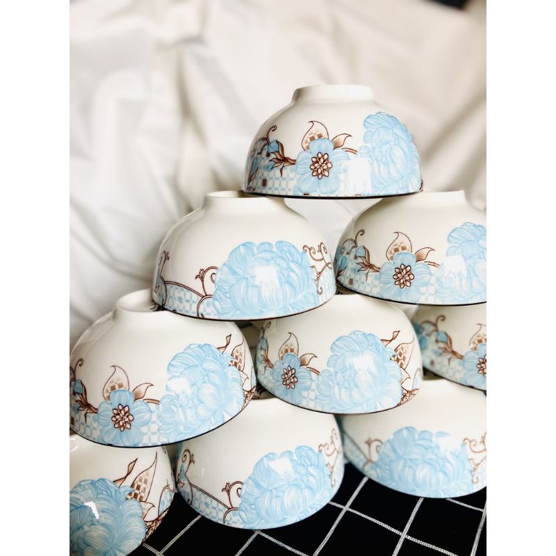Nhà cửa & Đời sống > Bộ đồ bàn ăn > Tô || Bộ 10 chén sứ ăn cơm cao cấp hoạ tiết 3D, miệng chén kẻ chỉCòn hàng