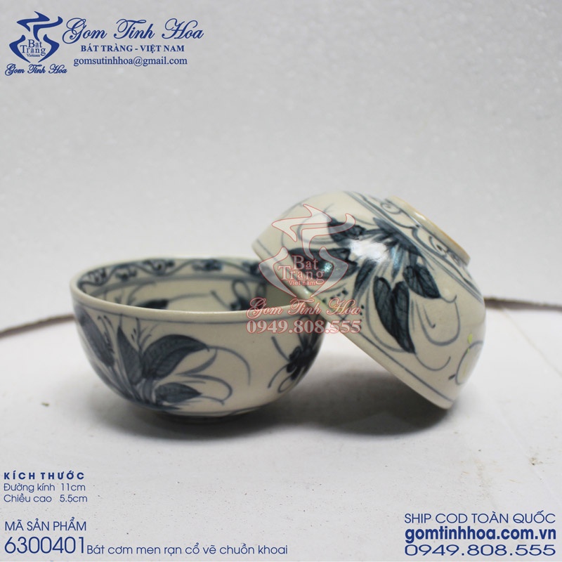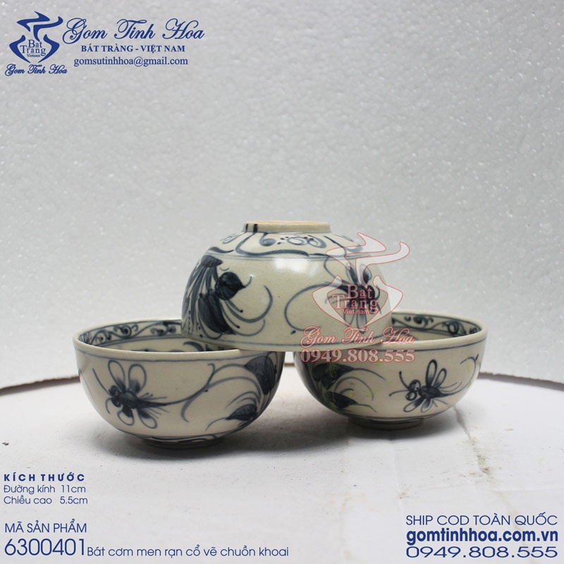 Chén bát ăn cơm gốm sứ Bát Tràng men rạn truyền thống - Dòng men đặc trưng của Đồ Gốm Bát Tràng, họa tiết hoa văn vẽ thủ công 100%. Chén bát đẹp, chất sứ đanh chắc, men nhẵn bóng, họa tiết trang trí chìm sâu trong men. Sản phẩm nung ở nhiệt độ 1300 độ C, loại bỏ toàn bộ tồn dư chì và hóa chất độc hại, tốt cho sức khỏe. Sản phẩm dùng được trong lò vi sóng và máy rửa bát. Bộ sản phẩm gồm: 10 chiếc. Chất liệu: Gốm sứ cao cấp. Dòng men: Men rạn Kích thước sản phẩm: Đường kính: 11cm Chiều cao: 5.5cm Xuất xứ: Làng gốm Bát Tràng - Hà Nội - Việt NamGiá GM
