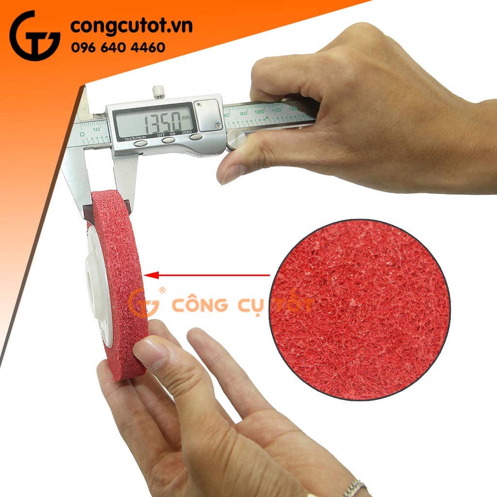 Làm từ sợi nỉ, cát , keo công nghiệp và các chất phụ gia nên bề mặt có độ nhám ráp nhất địnhTốc độ quay 13.000 vòng/phút nên tương thích với rất nhiều loại máy mài trên thị trường