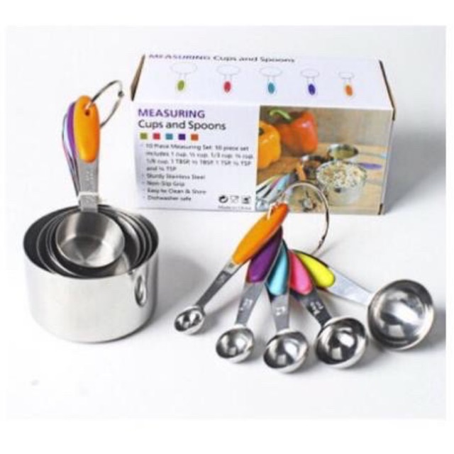 Nhà cửa & Đời sống > Dụng cụ nhà bếp > Dụng cụ đo lường || Bộ 10 cup thìa đong inoxCòn hàng