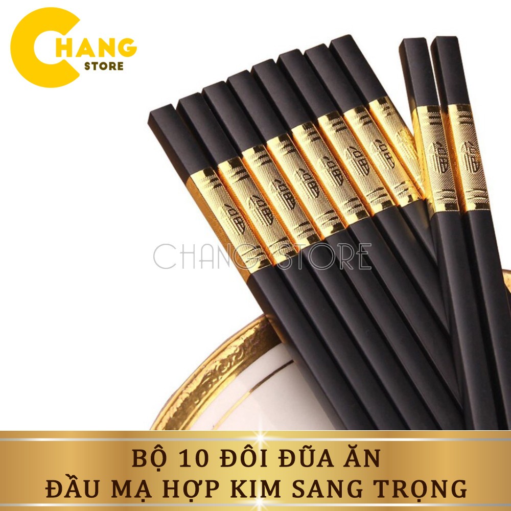 Bộ 10 Đôi Đũa Ăn Hàn Quốc Cao Cấp Đầu Mạ Hợp Kim Vàng Sang Trọng