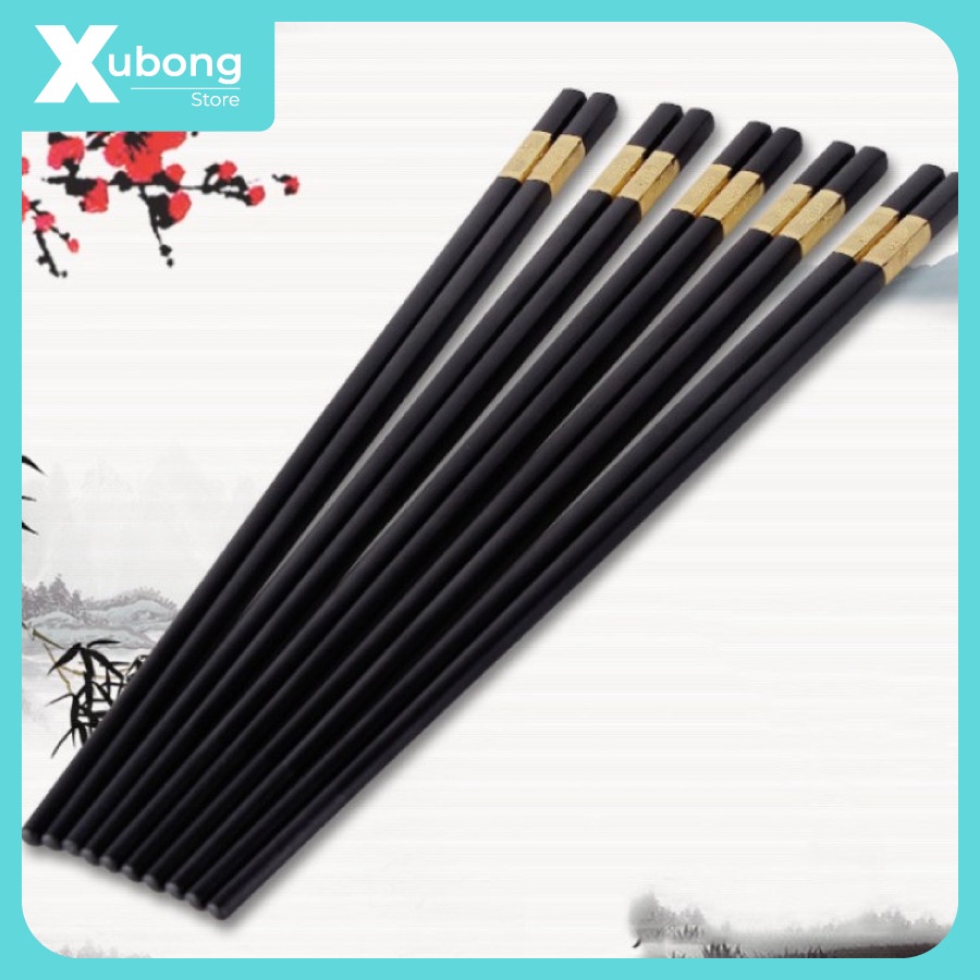 Bộ 10 Đôi Đũa Mạ Vàng - Đũa Nhựa Đen Cao Cấp Chống Trơn Chống Mốc Chịu Nhiệt