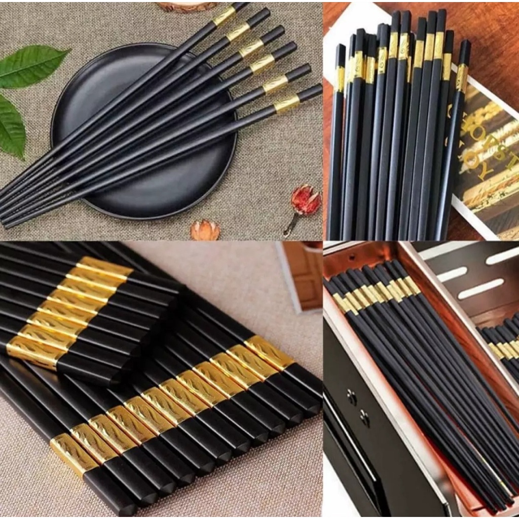 Nhà cửa & Đời sống > Dụng cụ nhà bếp > Cây vét bột & đồ gắp thức ăn || Bộ 10 đôi đũa mạ vàng không trơn dễ gắp thức ănCòn hàng