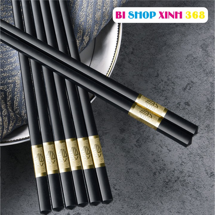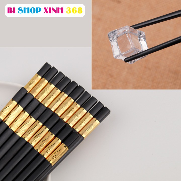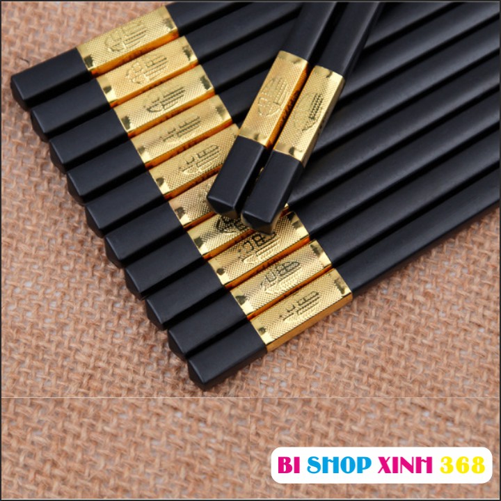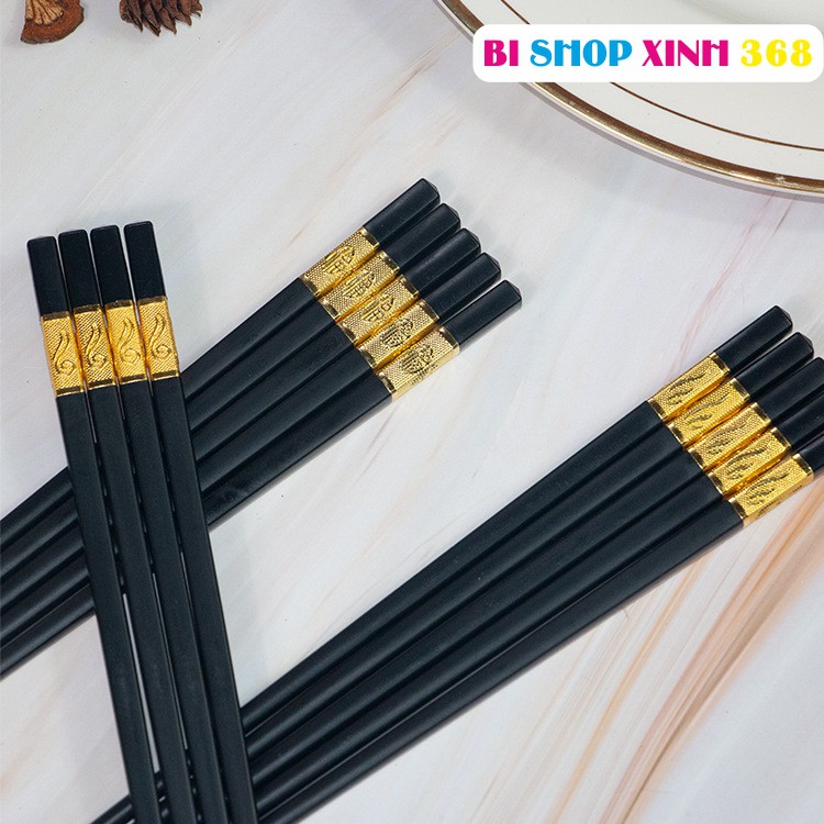 Bộ 10 Đôi Đũa Nhựa Nhật Cao Cấp Khảm Vàng Kháng Khuẩn Chịu Nhiệt Chống Trơn Tốt Hơn Đũa Gỗ Phụ Kiện Bàn Ăn