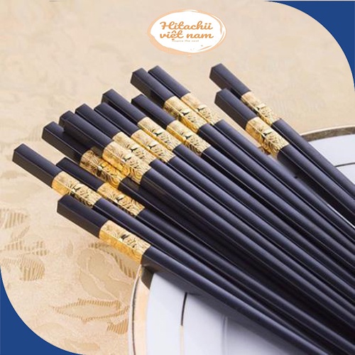 Bộ 10 Đôi Đũa Nhựa Nhật Hàn Quốc Hợp Kim Mạ Khảm Vàng Phụ Kiện Bàn Ăn Chống Bong Tróc Ẩm Mốc, Đũa ăn sang trọng cao cấpTHÔN TIN SẢN PHẨM:
