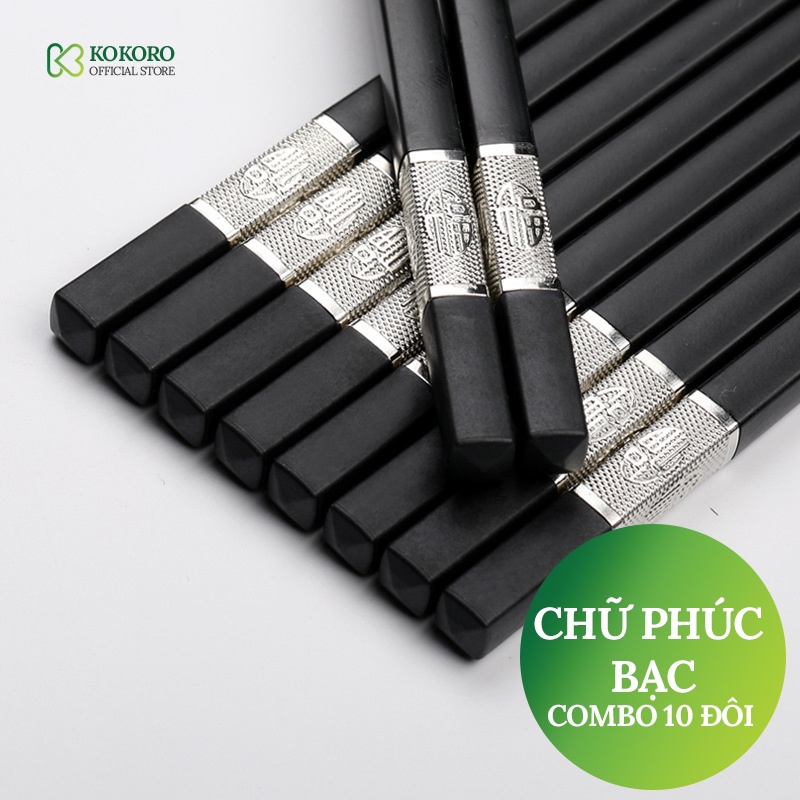 Bộ 10 đôi đũa nhựa phong các Nhật Bản dùng ăn cơm cao cấp khảm vàng chịu nhiệt chống trơn tốt hơn đũa gỗ phụ kiện bàn ăn