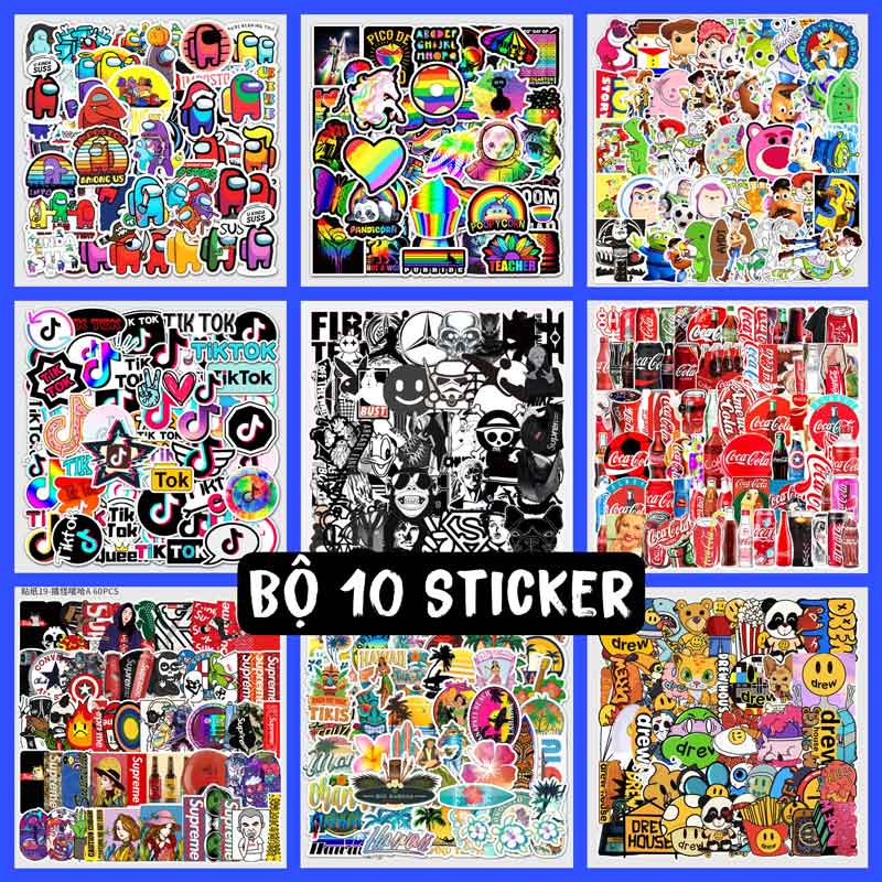 10 miếng Sticker dán nón bảo hiểm,vali chất liệu chống thấm nước