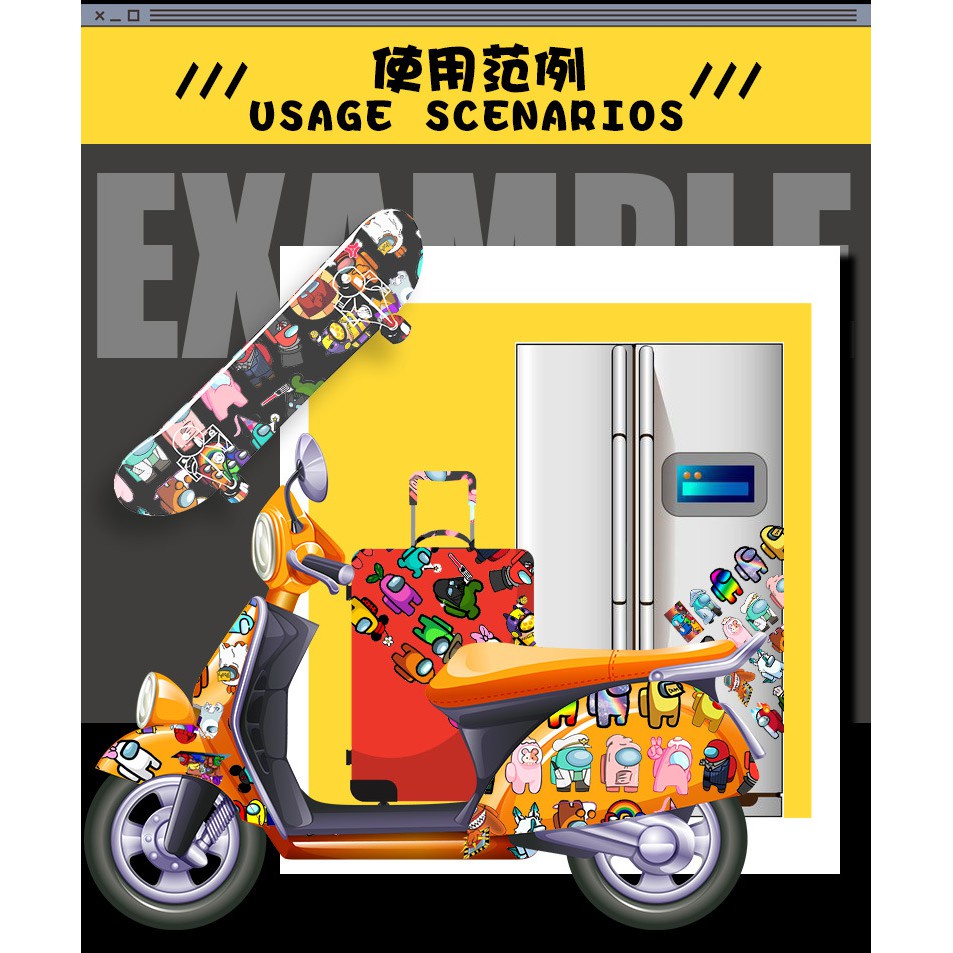 Ứng dụng: dán vali, máy tính, balo, tập, nón bảo hiểm, ốp lưng, tường, ...