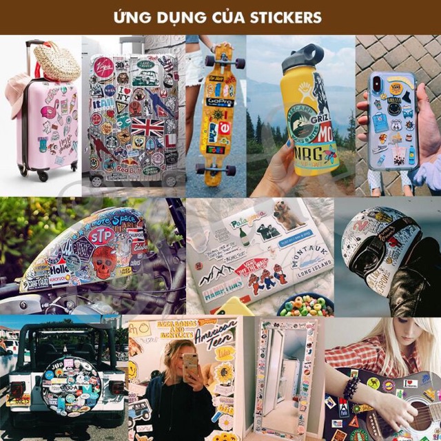 Giới thiệu 10 miếng Sticker dán nón bảo hiểm,vali chất liệu chống thấm nước