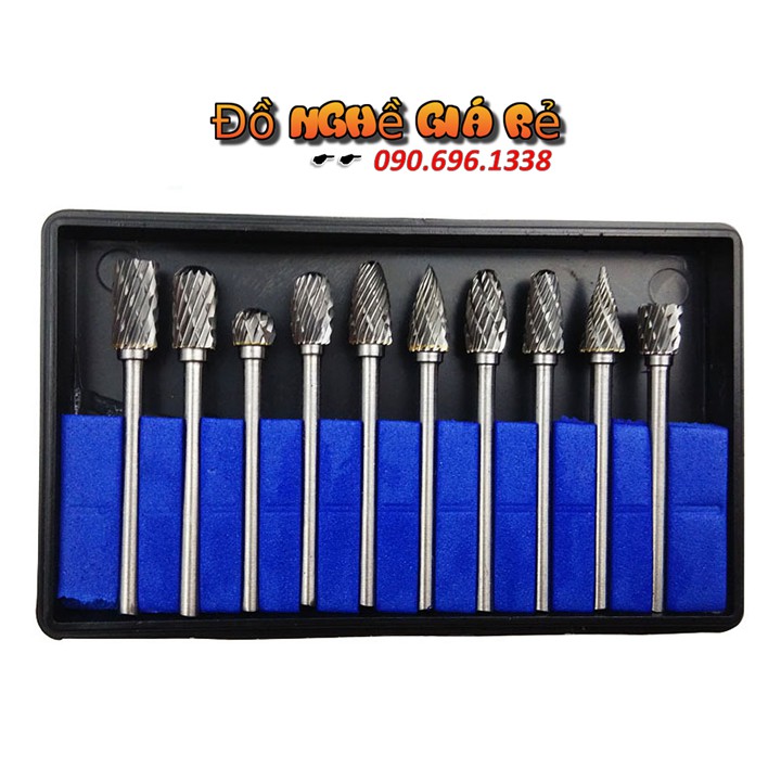 BỘ 10 MŨI MÀI HỢP KIM VONFRAM+ Chất liệu : Thép hợp kim tungsten Carbide cao cấp, có độ cứng và tuổi thọ cao hơn khá nhiều so với thép HSS