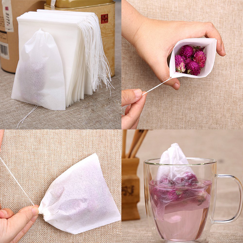 Túi lọc trà có dây buộcSản phẩm gồm 10 chiếc Túi lọc trà có dây buộc cùng kích thước