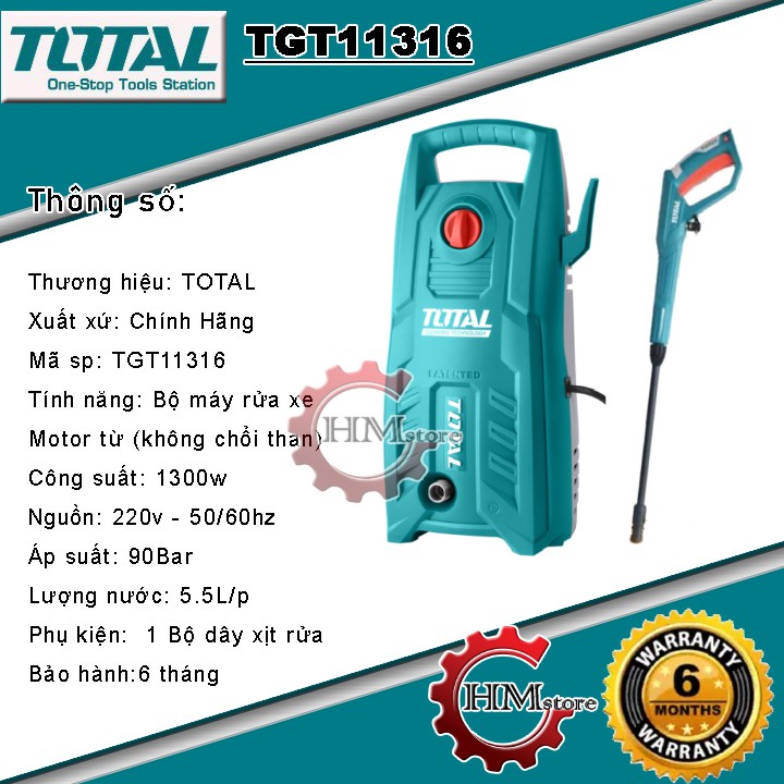Giới thiệu [100% Chính hãng] Máy rửa xe TOTAL TGT11316 - Công suất 1300w 90 Bar - 6 tháng bảo hành