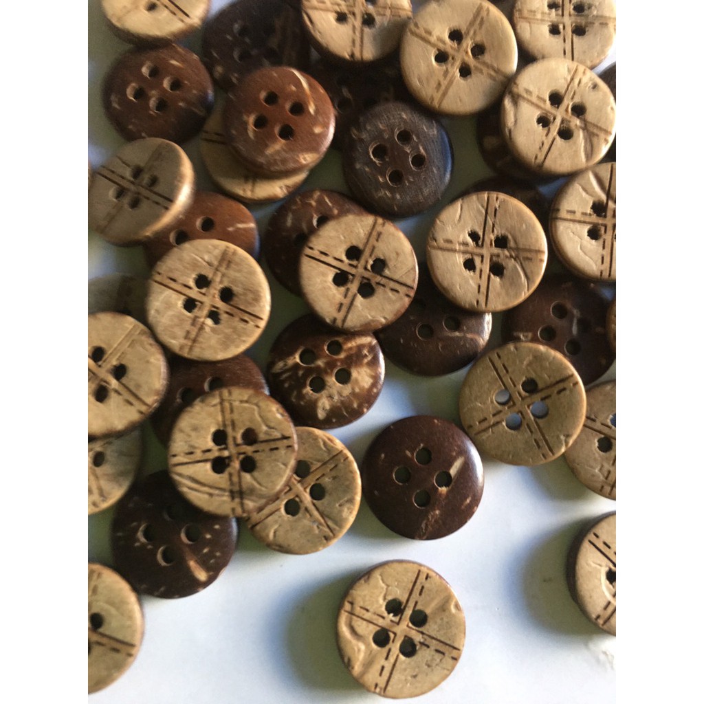 100 nút dừa 2 mặt nhiều mẫu để bạn chọn nút đường kính 1.2cm nút làm áo sơ mi trang trí...