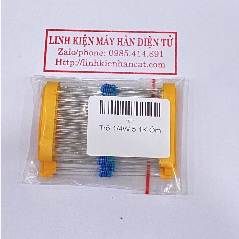 * Mô Tả Sản Phẩm : Trở 1/4W 5.1K Ôm* 01 Gói Trở bao gồm 100 Con Điện Trở 1/4W 5.1K Ôm