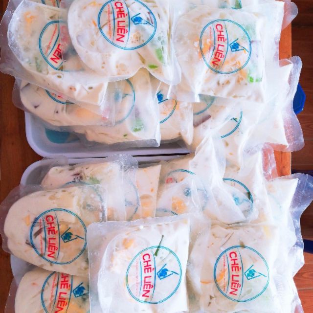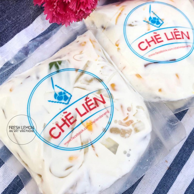 100 túi nilong đựng chè sầu liên đà nẵng đã in sẵn, túi đáy đứng,túi in 2 mầu xanh và đỏ.