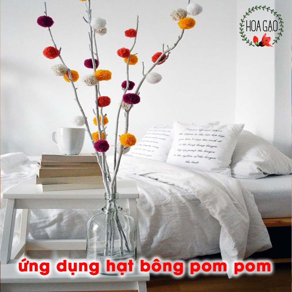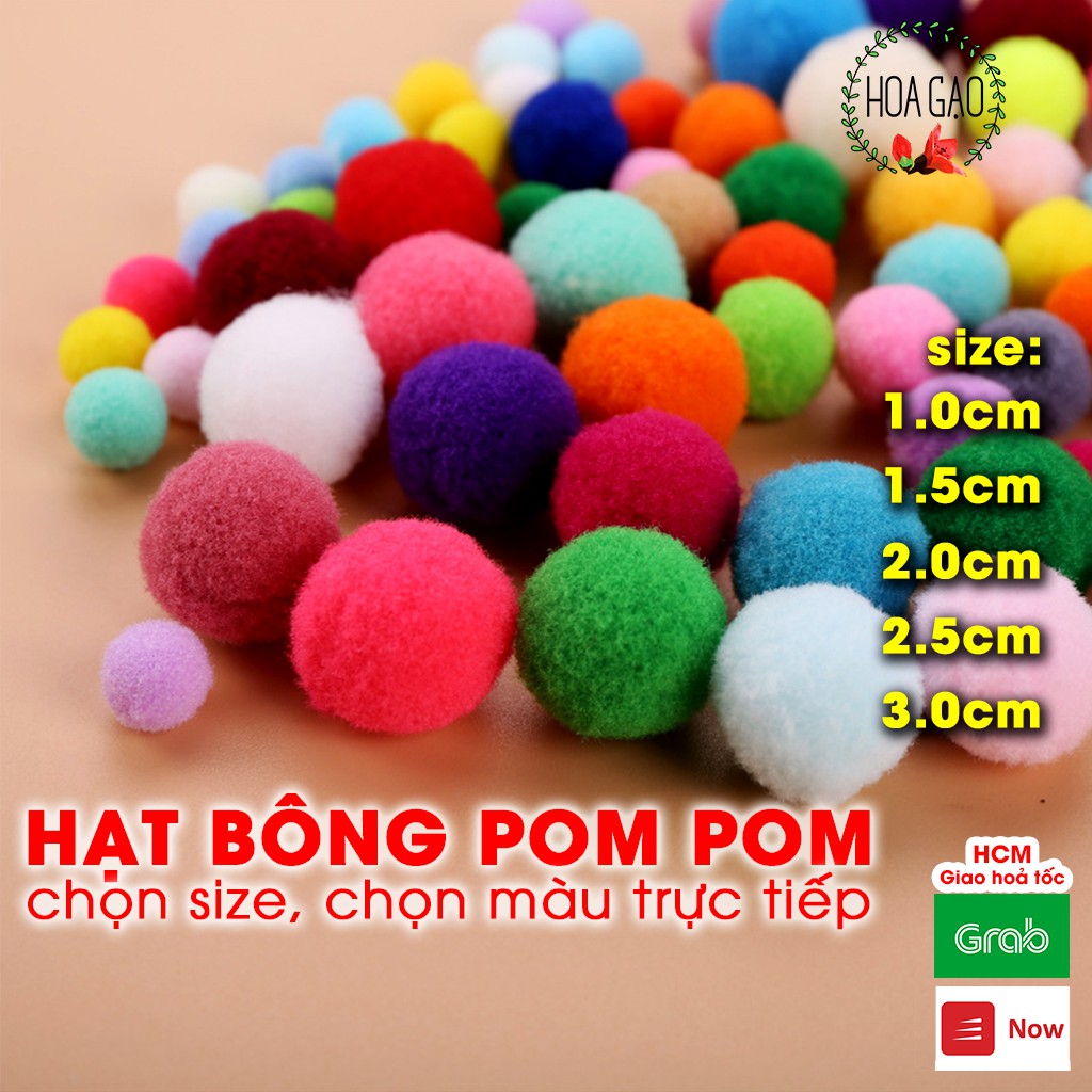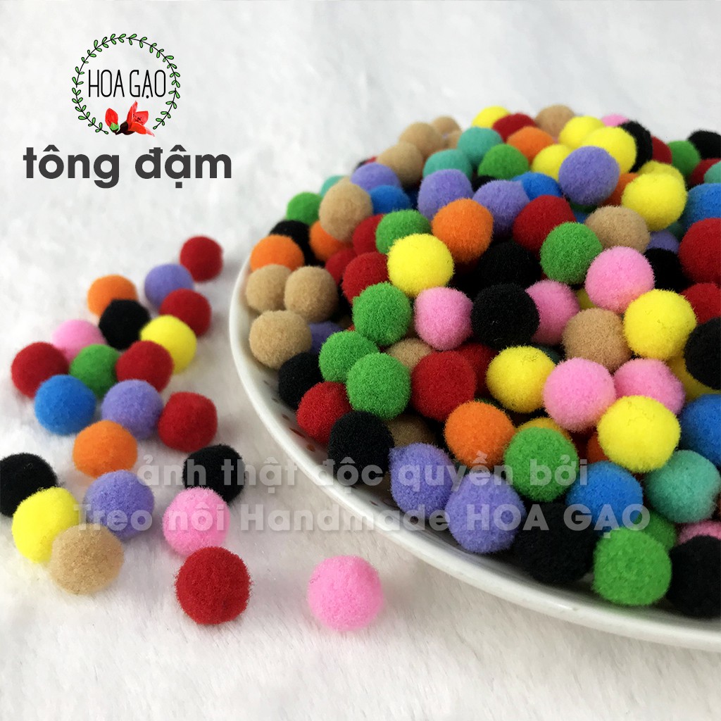 100 viên pompom phụ kiện may mặc pom pom HOA GẠO GPMA cục bông nhiều màu 1cm 1.5cm 2.0cm 2.5cm 3.0cm đồ handmade mầm non