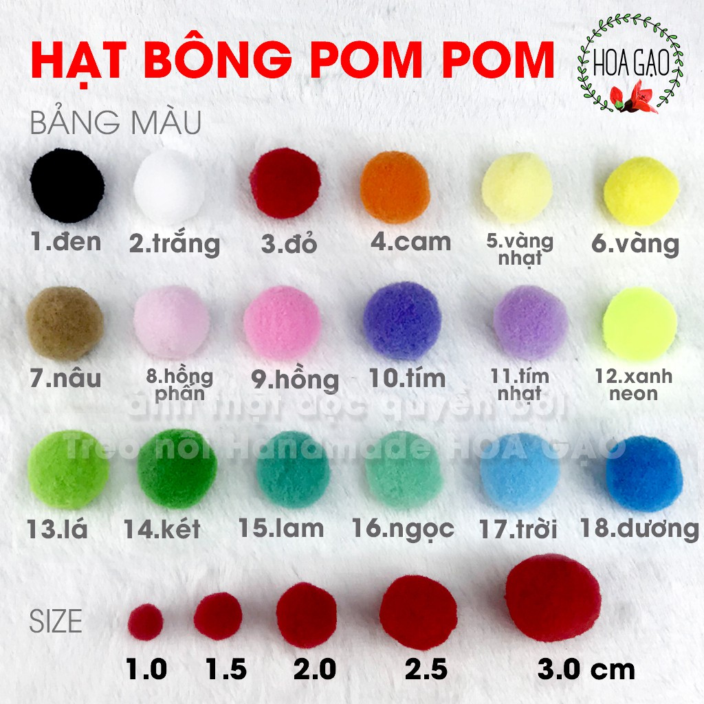 Giới thiệu 100 viên pompom phụ kiện may mặc pom pom HOA GẠO GPMA cục bông nhiều màu 1cm 1.5cm 2.0cm 2.5cm 3.0cm đồ handmade mầm non