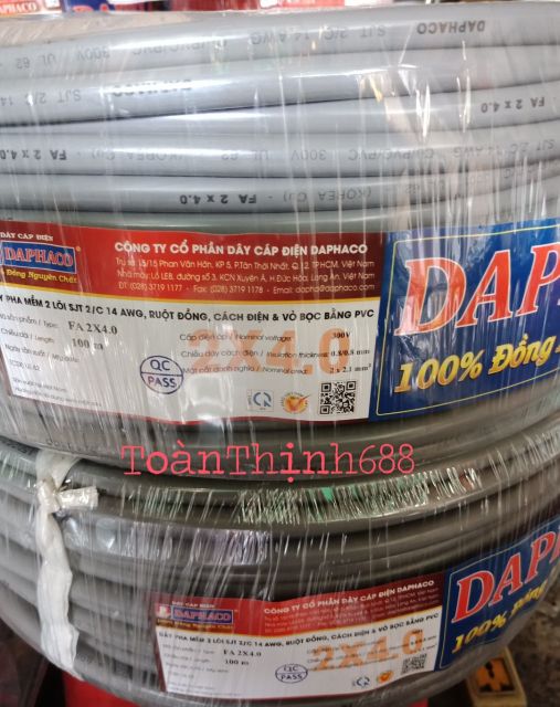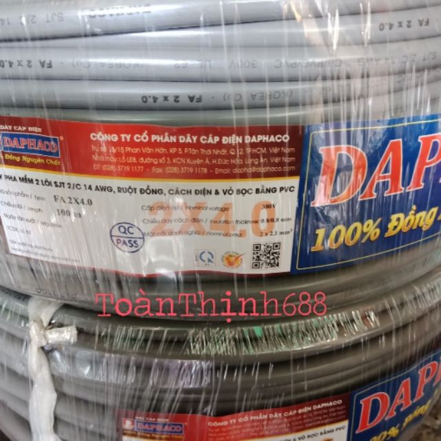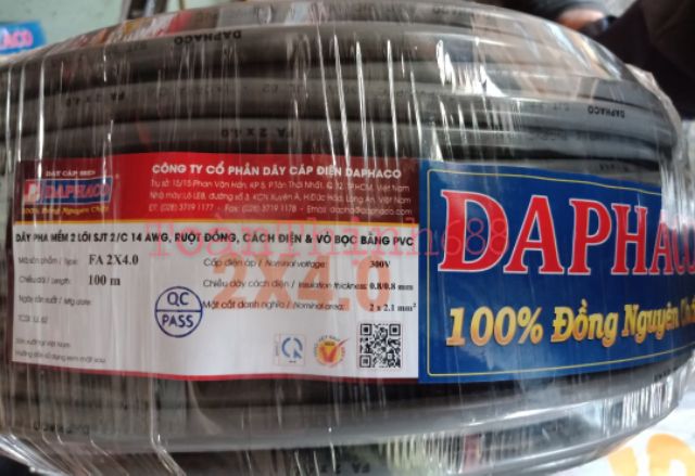 Dây điện đôi 2x4.0 Daphaco (dây pha mềm 2 lõi đồng 2 lớp PVC cách điện rất an toàn )