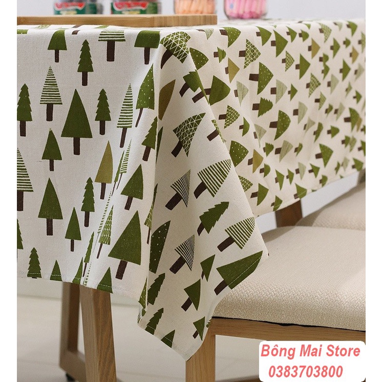 Nhà cửa & Đời sống > Trang trí nhà cửa > Khăn trải bàn || [120*170cm] Khăn trải bàn vải canvas có viền mép họa tiết thông xanh phong cách vintage [T011]Còn hàng
