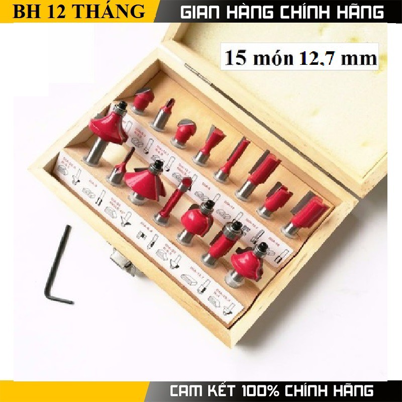 + Bộ 15 mũi phay gỗ cốt 12,7mm chuyên dùng cho máy phay cầm tay hoặc máy bàn router+ Dao được làm bằng chất liệu thép carbon 45 # và hợp kim YG8