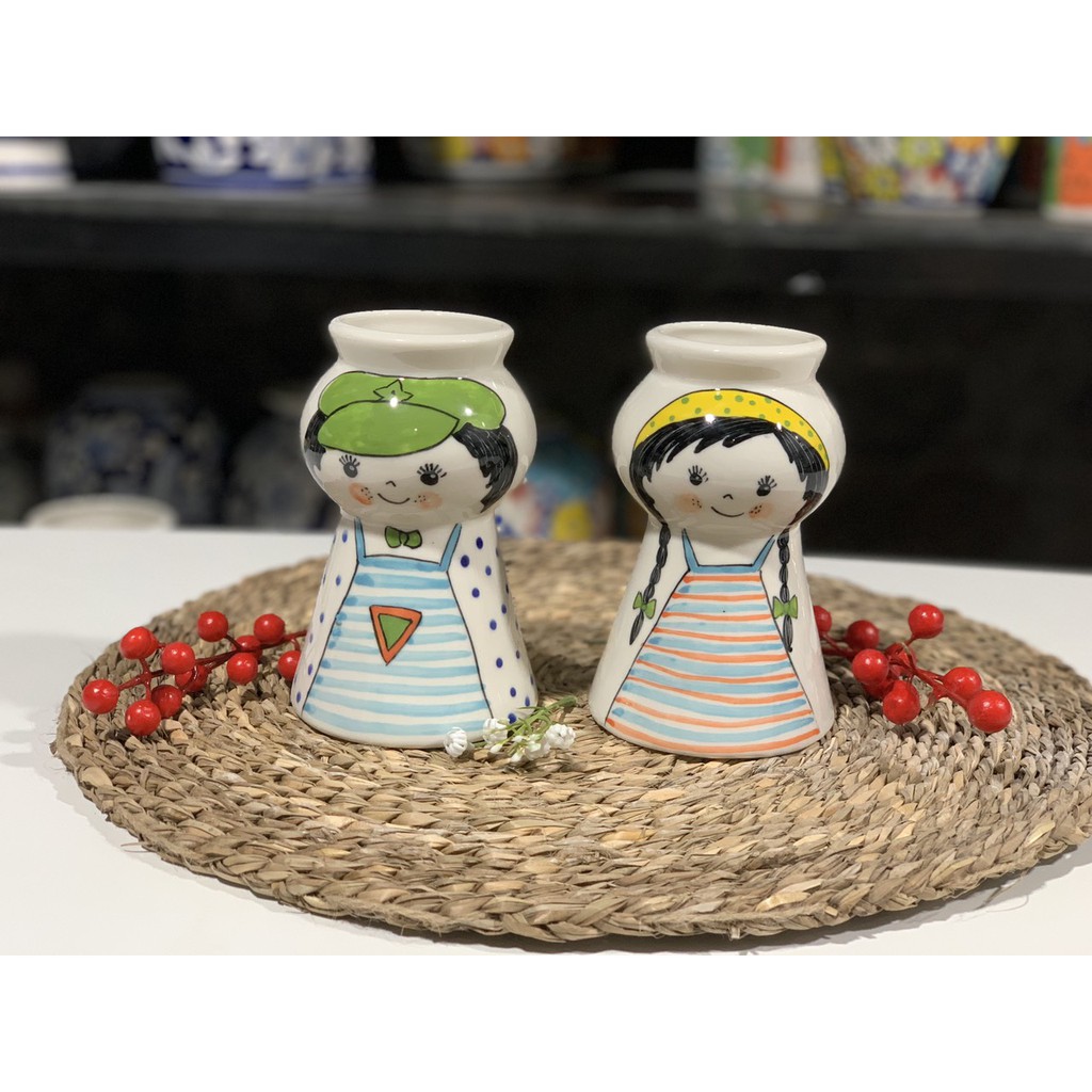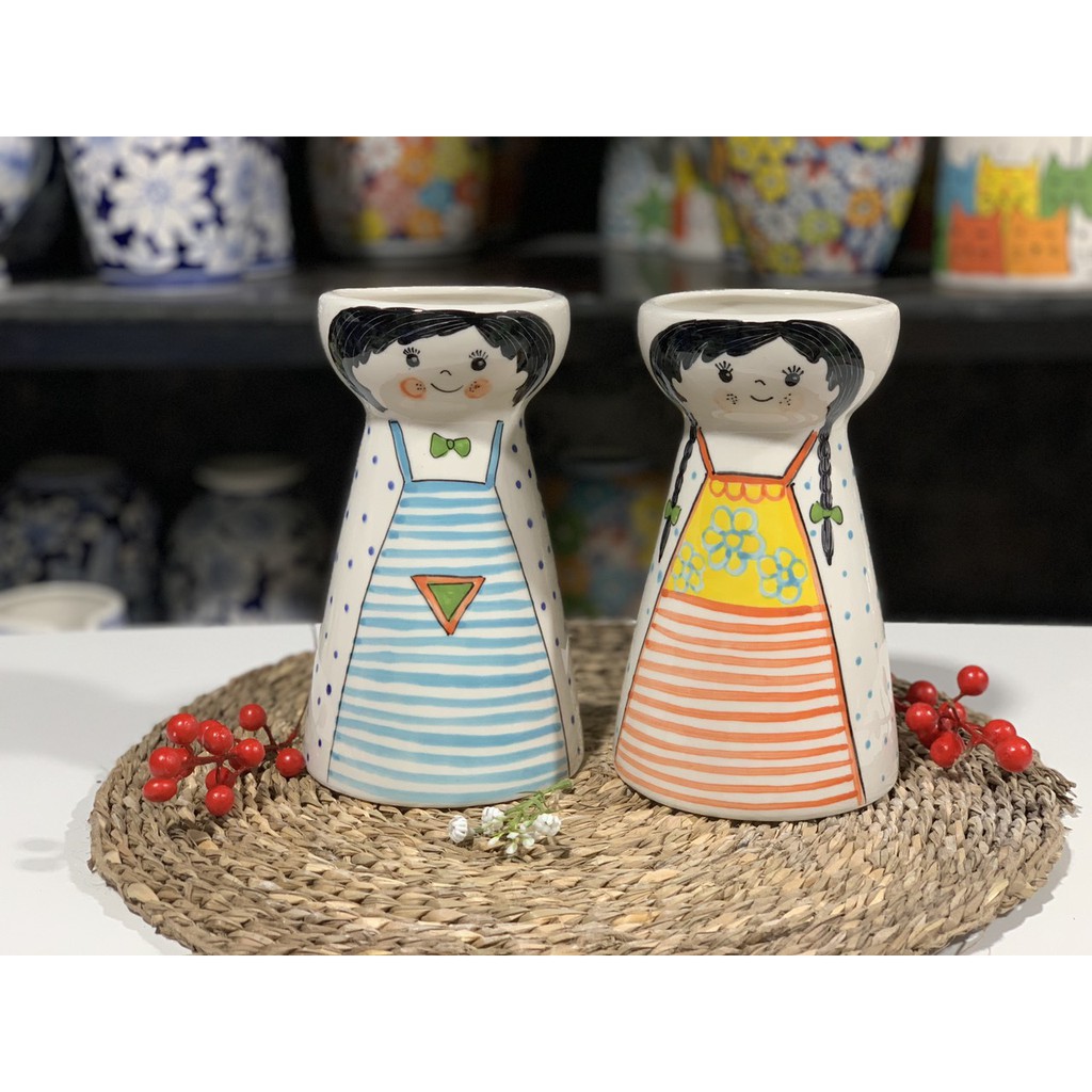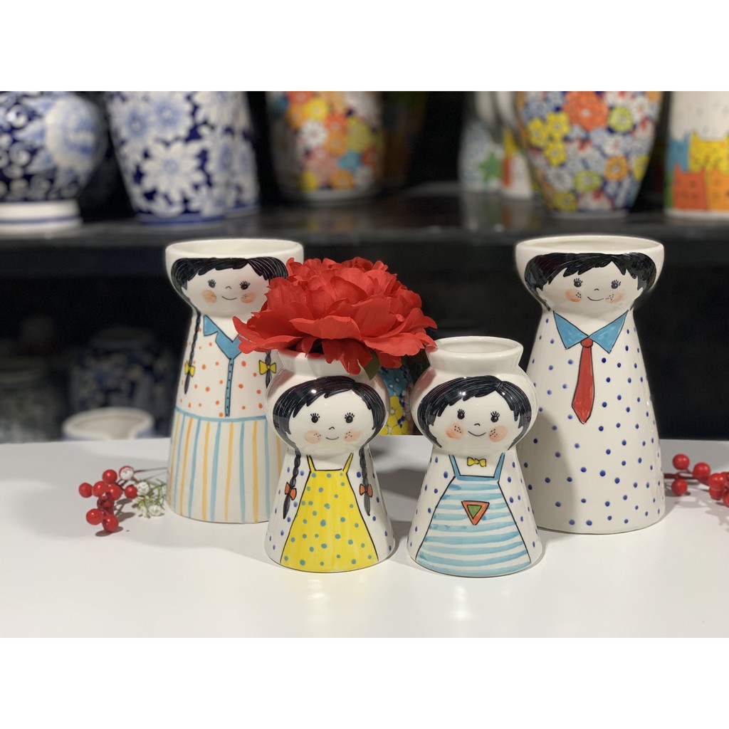 Nhà cửa & Đời sống > Trang trí nhà cửa > Bình trang trí || [cao 15cm] Bình hoa búp bê mini gốm sứ bát tràng trang trí bàn học, làm việc, trưng bày, DecorCòn hàng